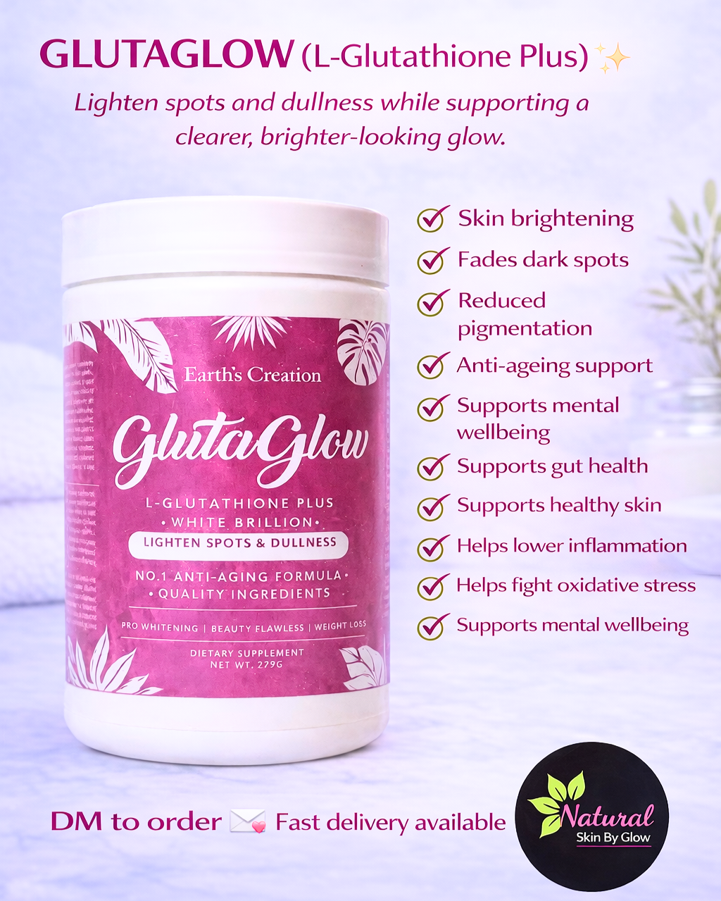 Earth’s Creation GlutaGlow L-Glutathione Plus is a daily beauty supplement designed to support clearer, brighter looking skin from within. This advanced formula combines glutathione with quality ingredients that help reduce the appearance of dark spots and uneven pigmentation while supporting healthy ageing.