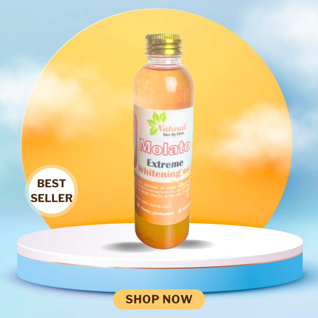 Molato Extreme Whitening Oil is infused with potent skin lightening ingredients, including glutathione, Snow White oil, and botanical extracts known for their illuminating properties.