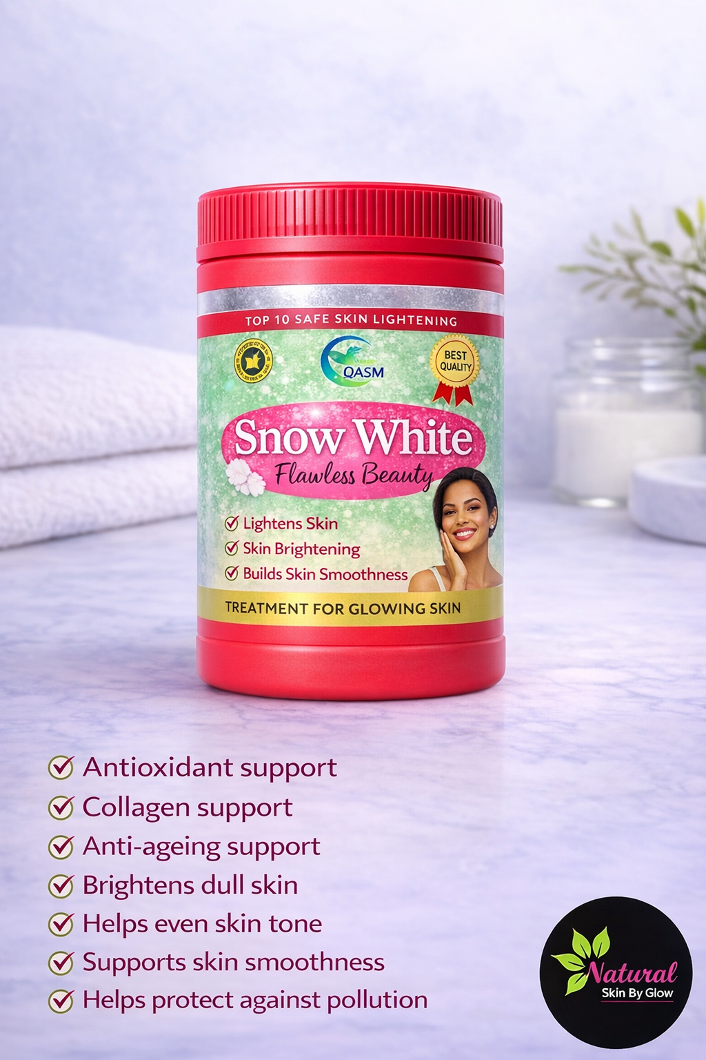 Snow White Flawless Beauty is a skin brightening treatment designed to support a clearer and smoother complexion. This formula combines antioxidant and collagen support to improve skin appearance while helping protect against everyday environmental stress.